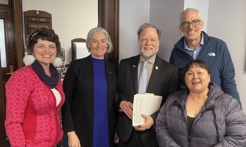From left NEA Director Kathy Simpler, Rep. Rebecca Himschoot, Rep. Ted Eischeid and NEA-Alaska Board members Phyllis Clough and Tim Parker. Both Rep. Himshoot and Rep. Eischeid are retired teachers who serve on the House Education Committee and are fierce advocates for public education, educators, and students.