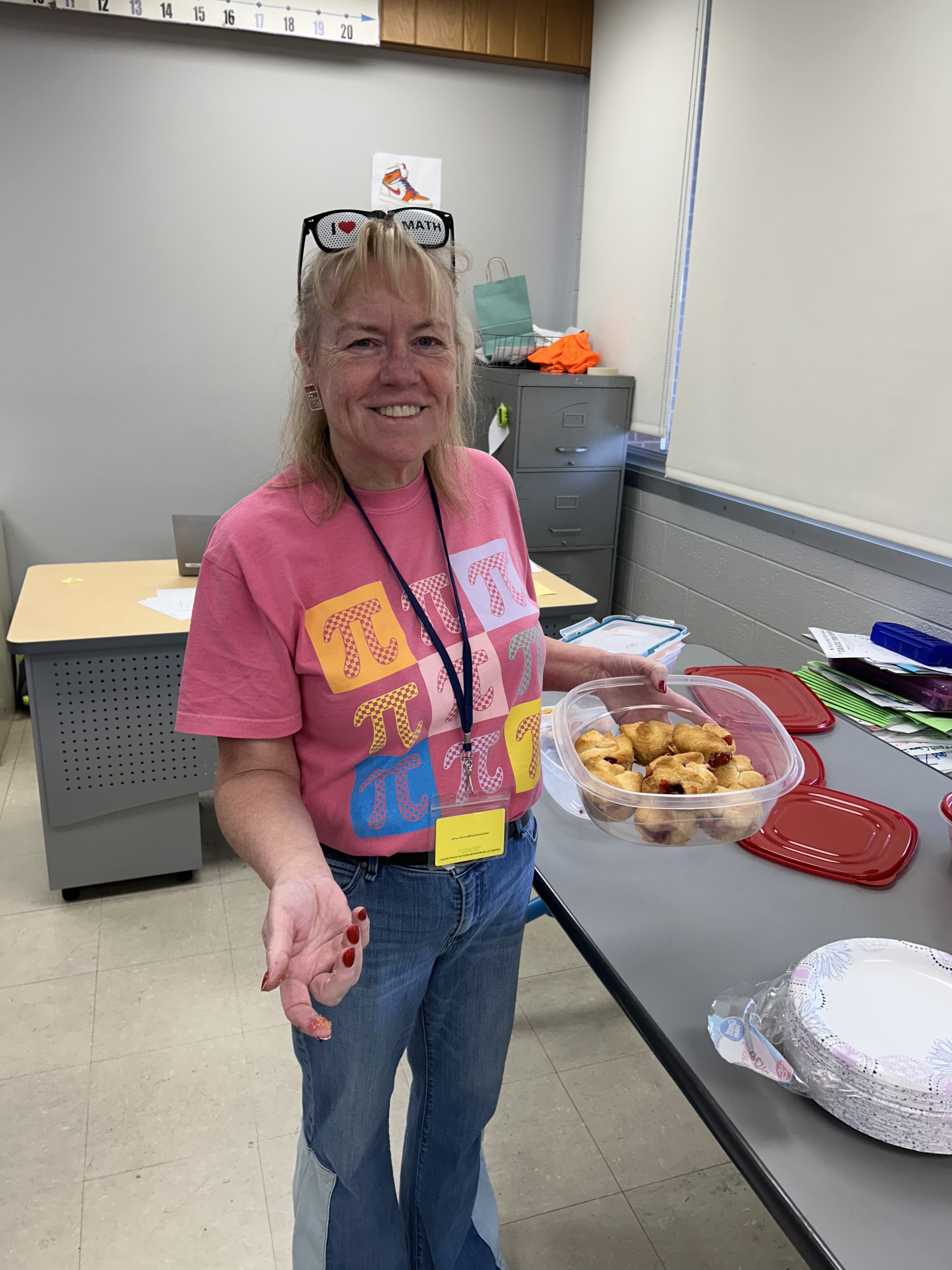 NEA-Alaska/Retired member Laura Farley retired from MSEA last year. It’s awesome to hear she is volunteering at the Black Hawk Middle School in Madison, Wisconsin. Her daughter is a member of the Wisconsin NEA and helped organize a “Math Week” at Black Hawk Middle School. Laura volunteered for the entire week in her daughter’s classroom. She said she had a great time. On one of the days, they made mini pies for PI DAY.